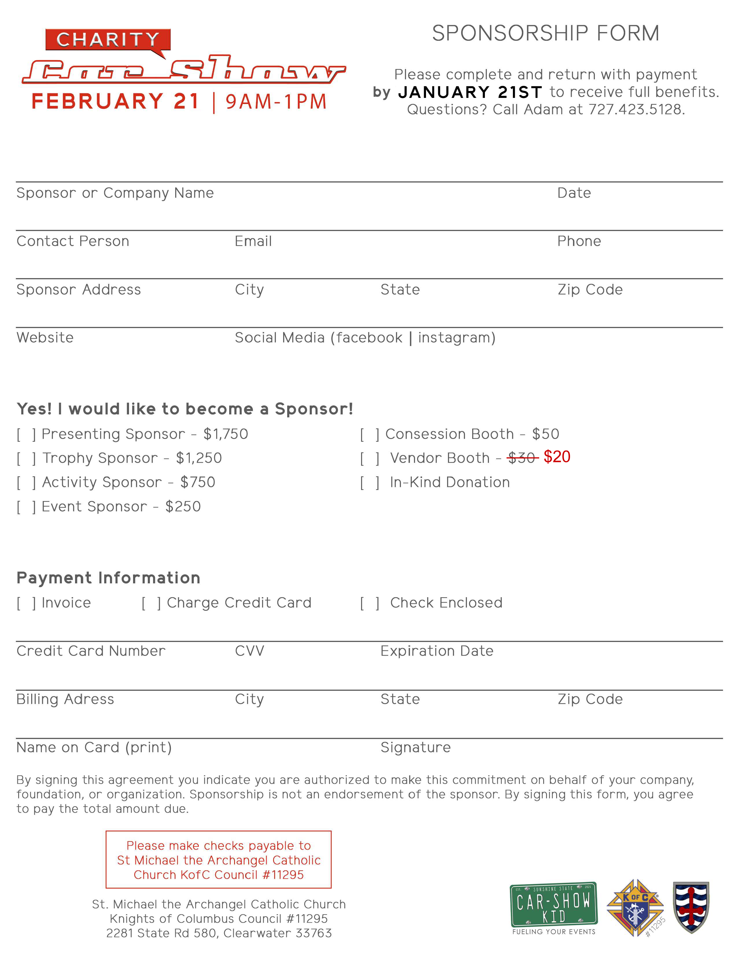 Download and complete the below form. Email to Adam at CarShowKid967@gmail.com